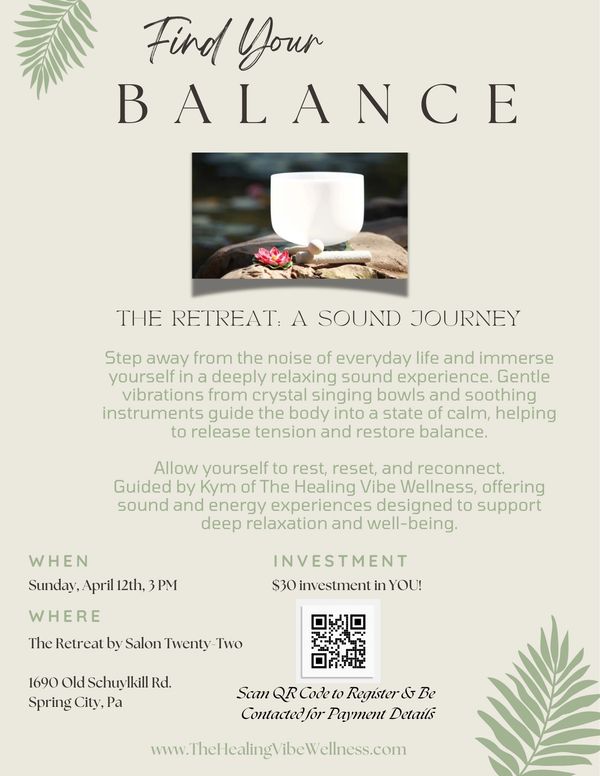 Guided by Kym of The Healing Vibe Wellness, offering sound and energy experiences designed to support deep relaxation and well-being.